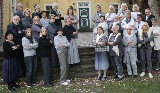 Christine Becker-Schmidt kommt mit ihrem Chor zu einer szenischen Vorab-Lesung aus der satirischen Situationskomödie in die Ausstellung von Hannes Bartels und kommentiert das Zeitgeschehen aus ungewohnter Perspektive. "Bitte recht freundlich" ist ein Ost-West Familienfest mit Gesang, Gift und Galle. Gute